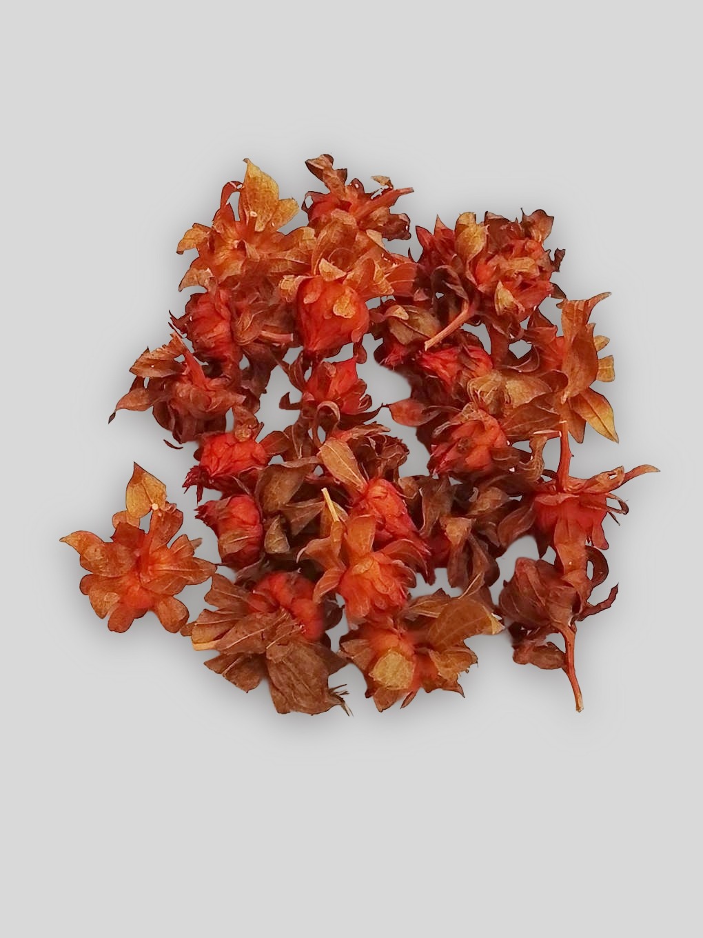 Piros színű, apró sáfrányfejek különféle szárazvirág dekorációk elkészítéséhez, 25 db-os kiszerelésben.
