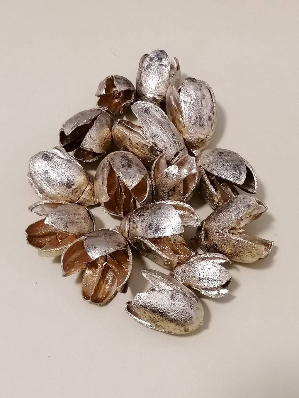 Arany színű bakuli szárazvirág dekorációk készítéséhez, 15 db-os kiszerelésben.