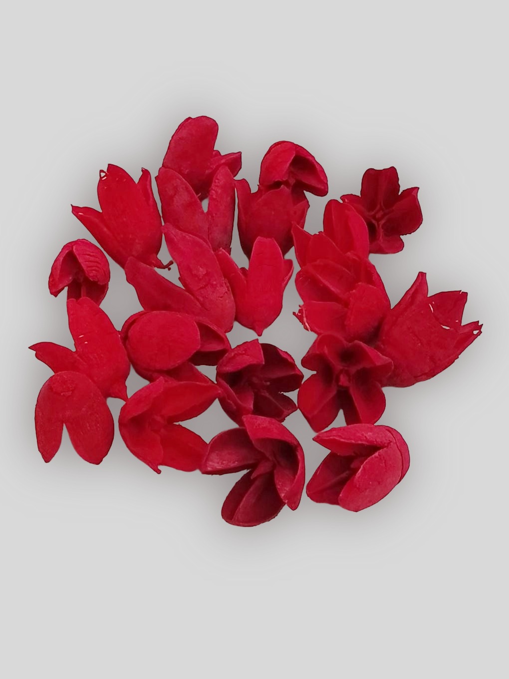 Piros színű bakuli szárazvirág dekorációk készítéséhez, 20 db-os kiszerelésben.