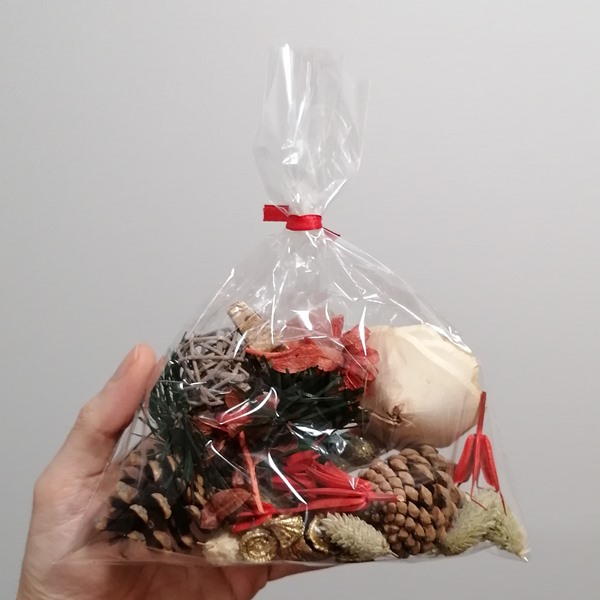 Különféle natúr és festett termésekből, kiegészítőkből összeállított karácsonyi dekorációs csomag, melynek segítségével könnyedén elkészíthetjük saját ünnepi koszorúnkat, kopogtatónkat.