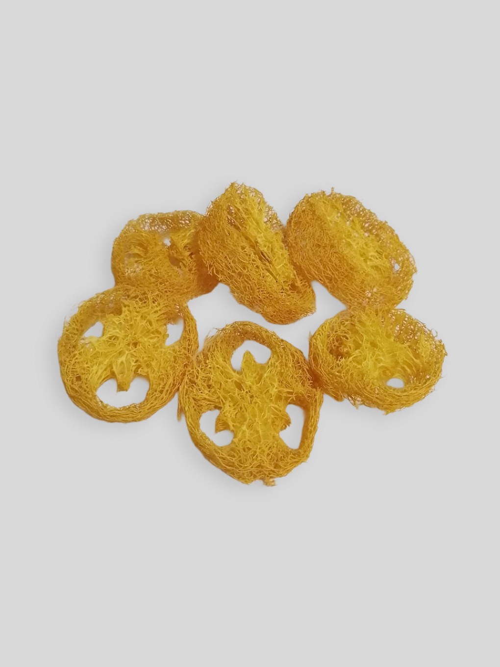 Sárga színű, festett luffatök szeletek szárazvirág dekorációk elkészítéséhez, 6db-os kiszerelésben.