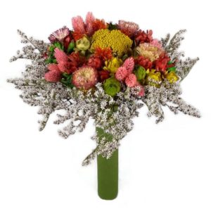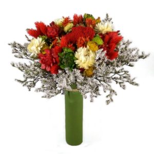 Szárazvirág csokor piros fénymaggal