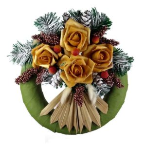 Kegyeleti koszorú polifoam rózsával – okker